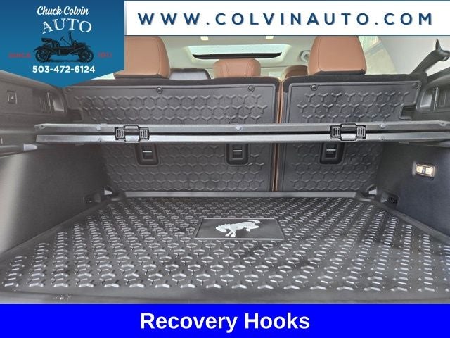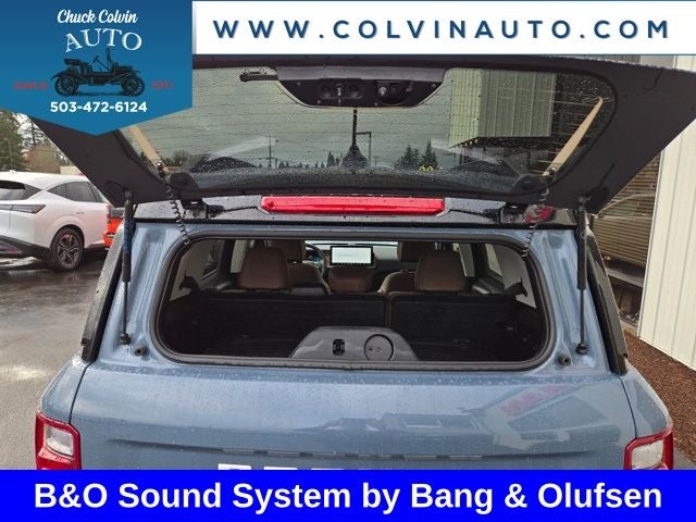 The exterior of this Bronco Sport is dressed in a stunning Blue hue, complemented by a host of premium features. The Sasquatch Outer Banks Package and Outer Banks Tech Package+ add a wealth of advanced technologies and off-road enhancements, including a B&O sound system, HD radio, a power moonroof, and a host of trail-ready features like recovery hooks, a brush guard, and high-clearance fender flares.