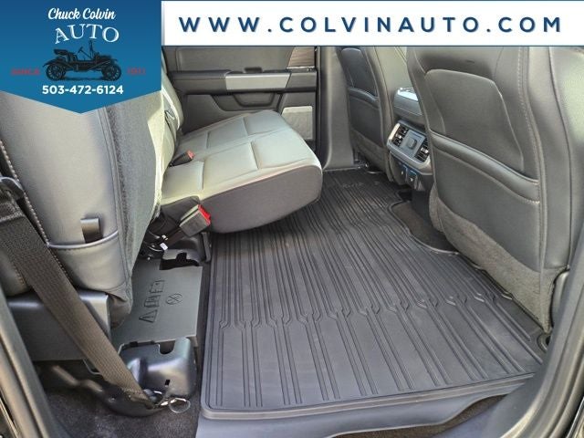 The luxurious interior of the Lariat sets it apart, featuring premium ActiveX-trimmed bucket seats, a heated steering wheel, and a state-of-the-art B&O sound system by Bang & Olufsen. The SYNC 4 infotainment system with enhanced voice recognition keeps you connected and in control, while the Tough Bed Spray-In Bedliner and Wheel Well Liner ensure your truck remains rugged and ready for any task.